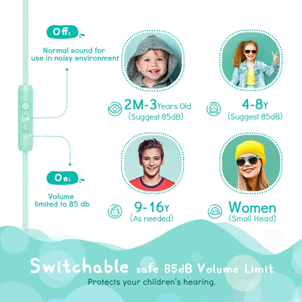 - ?Strong headphone cable: Nylon fibers with special weaving method can resist most of the friction and pulling, so that children can move freely without being bound by the easily torn headphone cable