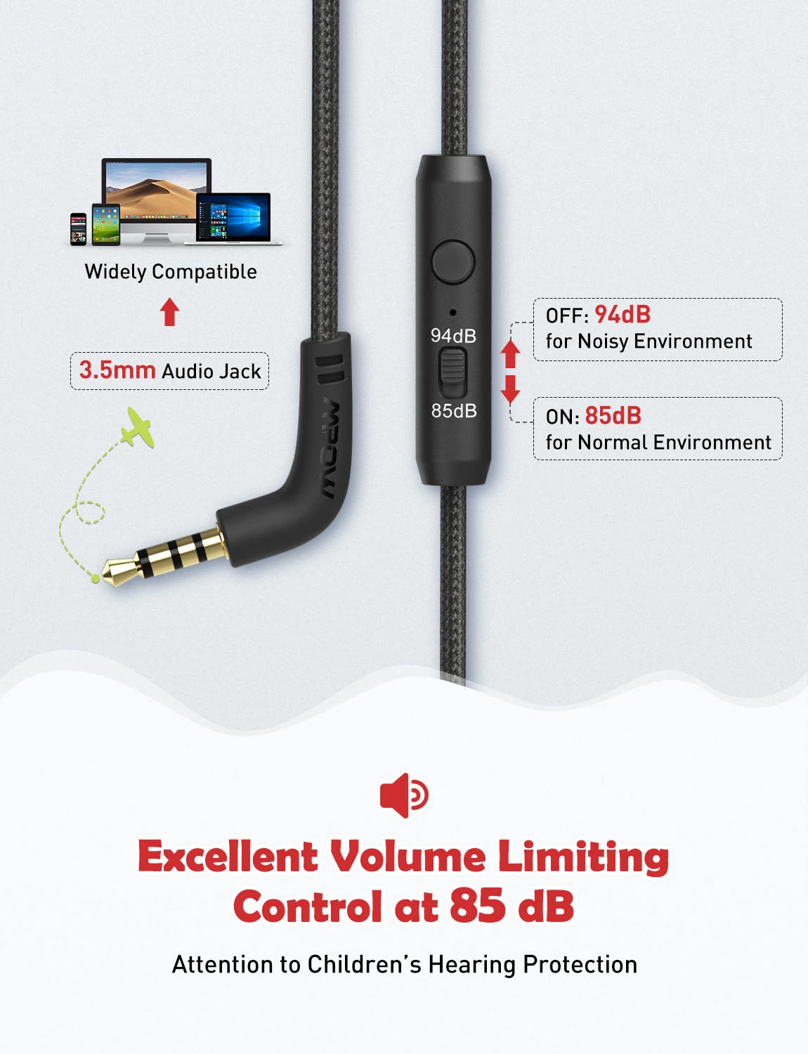 - 85/94dB Hearing Protection: Hearing damage is irreversible. Kids’ ears are fragile and sensitive, to prevent kids from accidentally turning up the volume, this wired headphones for kids have a built-in 85/94 dB selectable volume limiter. You can choose 85dB for daily use. In a noisy environment such as a car or plane, 94dB can achieve a clear and still safe volume.