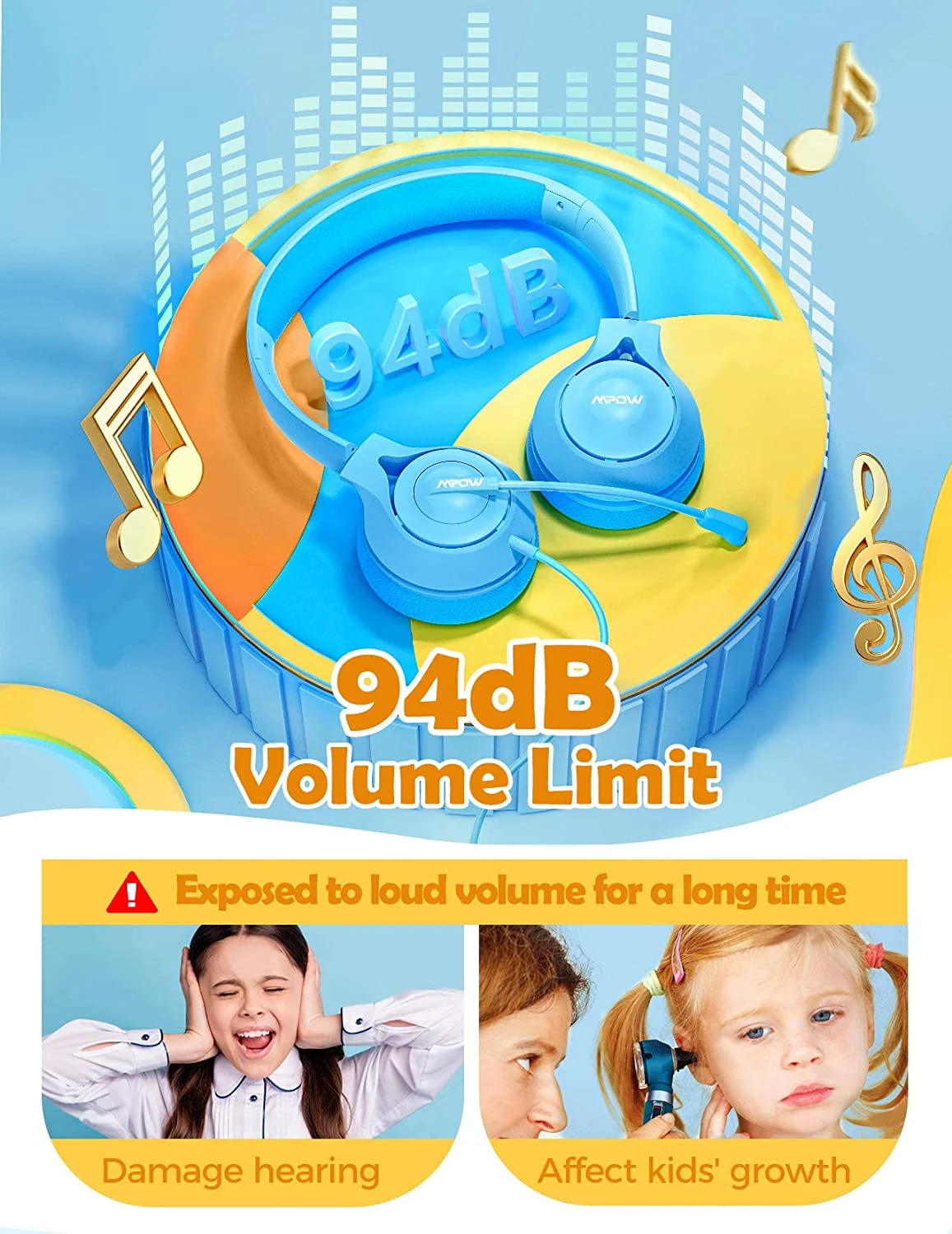 94dB Volume Limit: Little kids like loud music but they don’t know this will damage their hearing; Mpow kid’s headphones are equipped with a built-in 94dB volume limit to protect your kids’ hearing; Your children/teenagers can be more concentrated in a noisy environment.