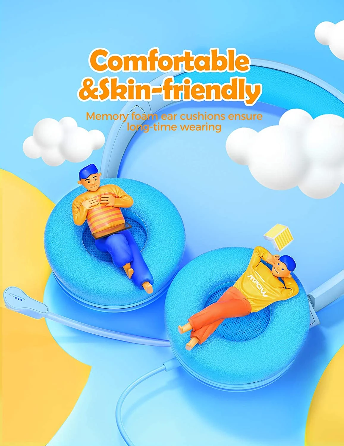 High-Performance Microphone: Designed with a high-sensitivity microphone, Mpow LH1 kids headphones let you talk to teachers online with exceptional clarity as if they were in the same room with you; Featuring 180° rotatable microphone, you can conveniently place it for better voice pickup.