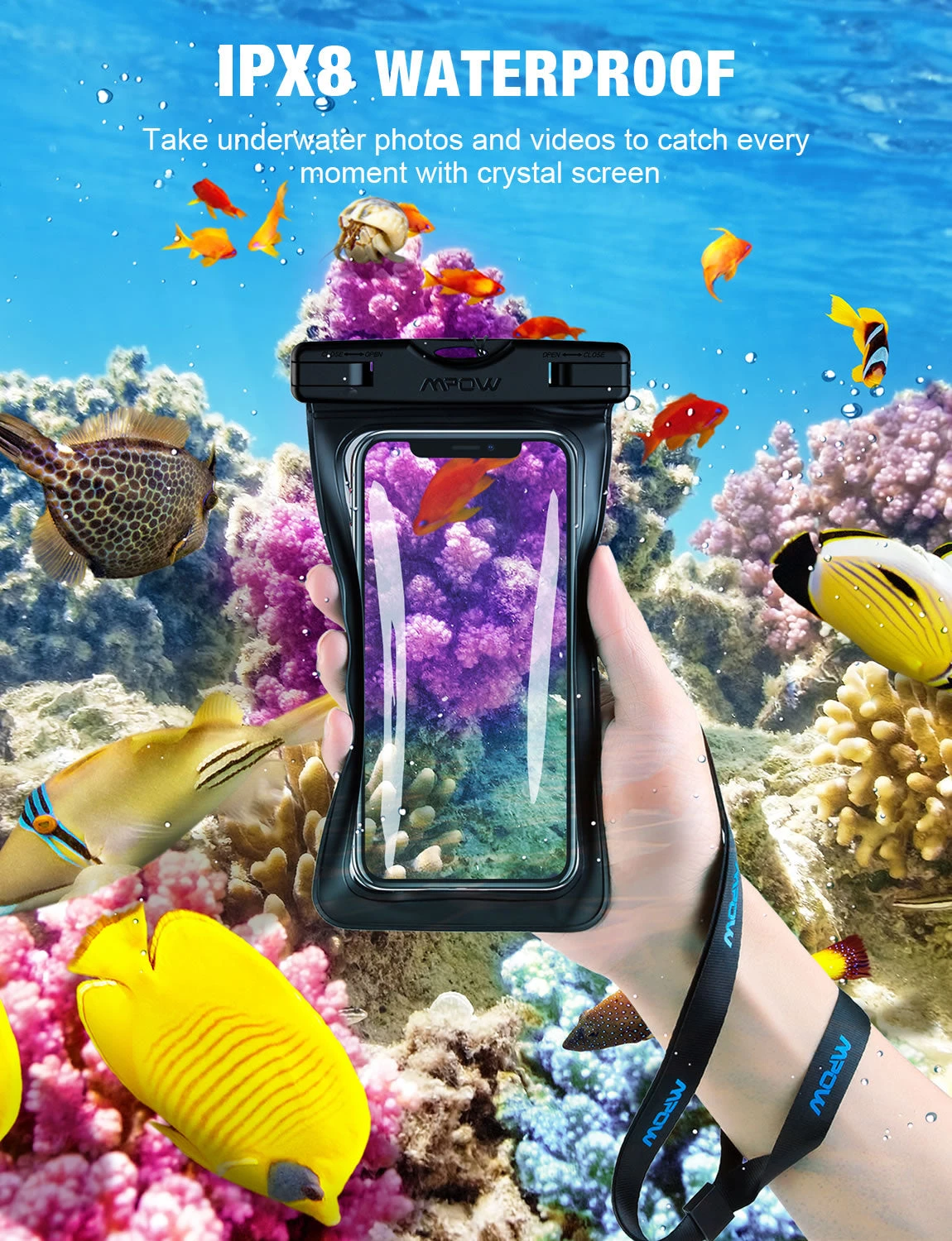 - UNIVERSAL SIZE: Mpow waterproof dry bag fits devices up to 6.5 inches and allows for extra space to put your credit card, ID, cash, coins. Perfect for indoor &outdoor activities, water sports, travels and more.