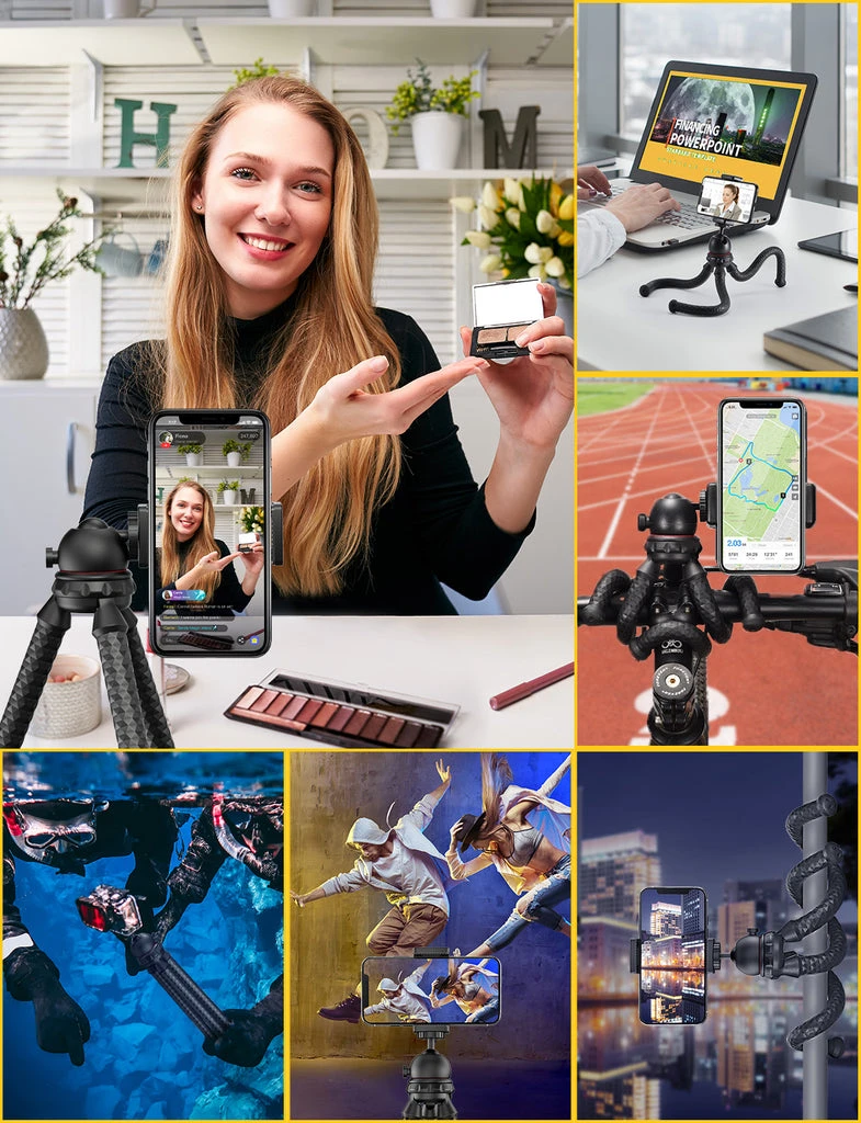 - Anti-crack and Upgraded Tripod: The upgraded tripod is made of premium silicone and aluminum, and the fixed-point stress reduces the pressure of the tripod, making its joints not easy to fall off, and the legs are less likely to break. This is why the Mpow phone tripod defeats the fragile foam tripod on the market.