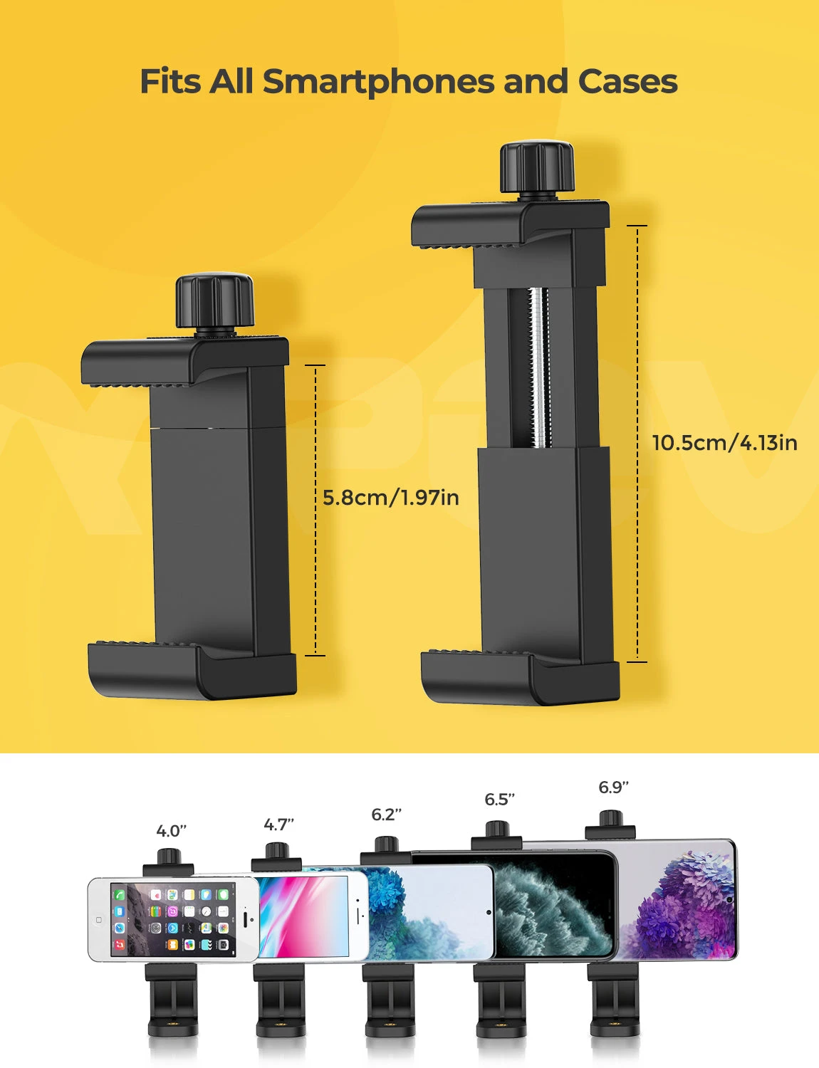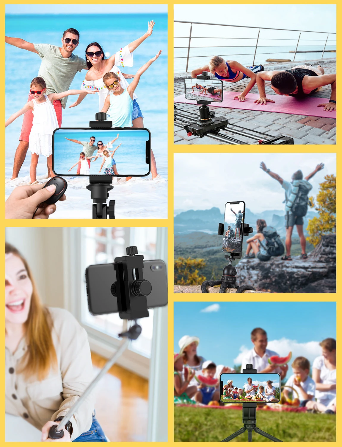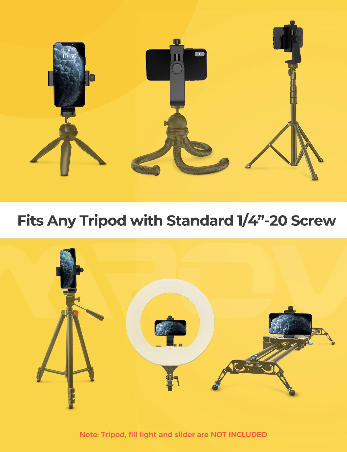 ONE MOUNT FITS ALL: The phone holder adapter features multiple standard ?’’ screw mounts, so you can attach your phone to virtually any tripod, monopod, and selfie stick with a standard ?’’ screw. This is an essential gadget for YouTubers, Vloggers, and outdoor photographers.
