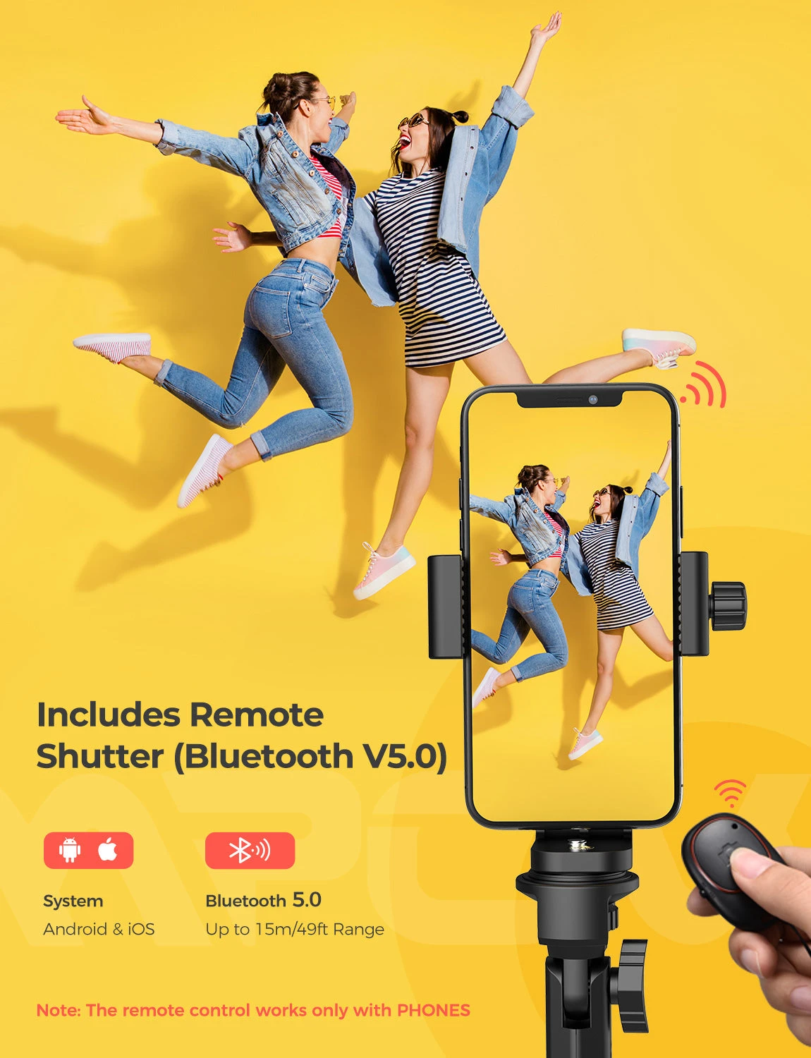 BLUETOOTH 5.0 REMOTE SHUTTER: You can snap a picture or record video from up to 15m/49ft away (commonly 10m/33ft on the market). The latest Bluetooth 5.0 technology ensures a more stable connection and wider compatibility with any iOS or Android smartphone.