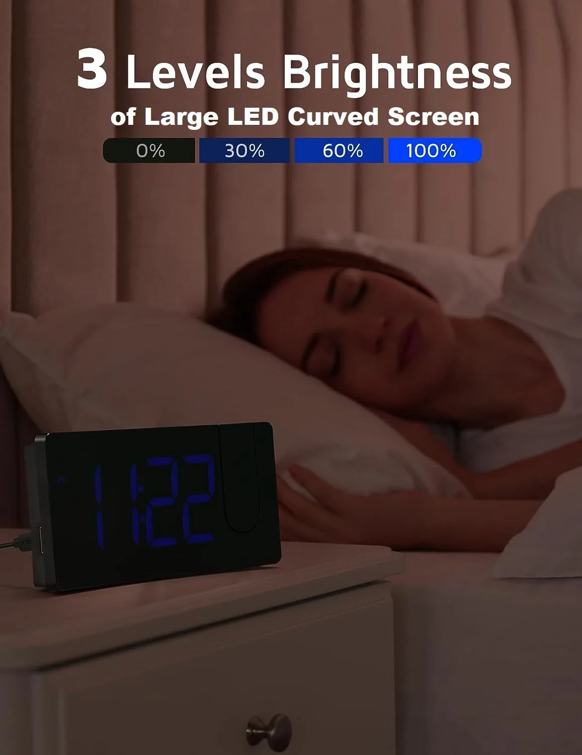 - SUPER SIMPLE TO USE — Based on customers’ preferences and requirements, this projecting alarm clock for bedrooms has the functions that people use most, such as 3-level brightness, USB charge port, 12/24H format transfer and snooze function. The simple operation of this digital clock makes it perfect for all ages.