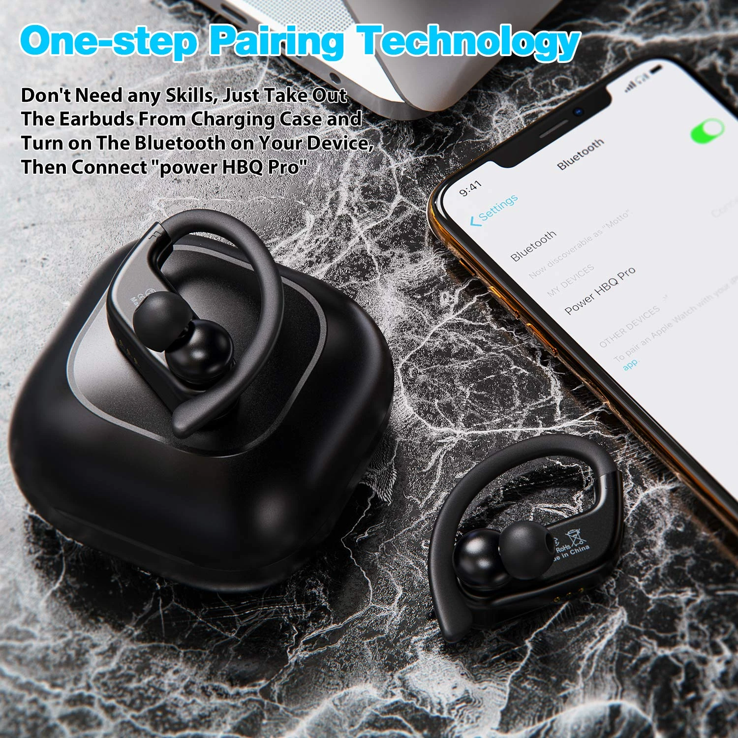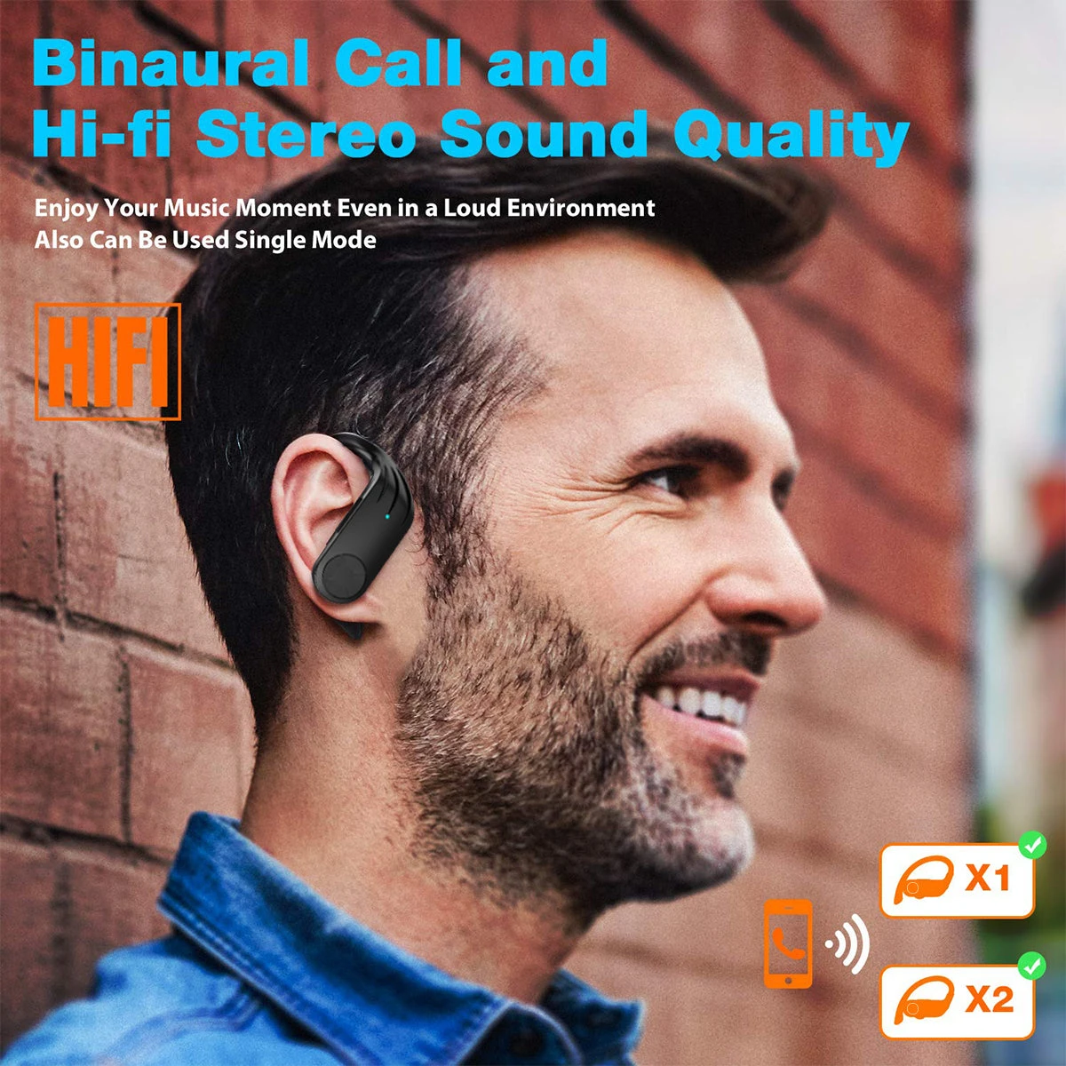 - 【Hi-Fi Premium Stereo Sound】– You could enjoy crystal clear music with exceptional accuracy and clarity. These wireless tws in ear hook earbuds are well balanced with bass and clear treble to create a rich high fidelity sound experience. The in ear earphones also sport a sleek high quality simple design of a summary surface, simply control, play, pause, or answer a phone call.