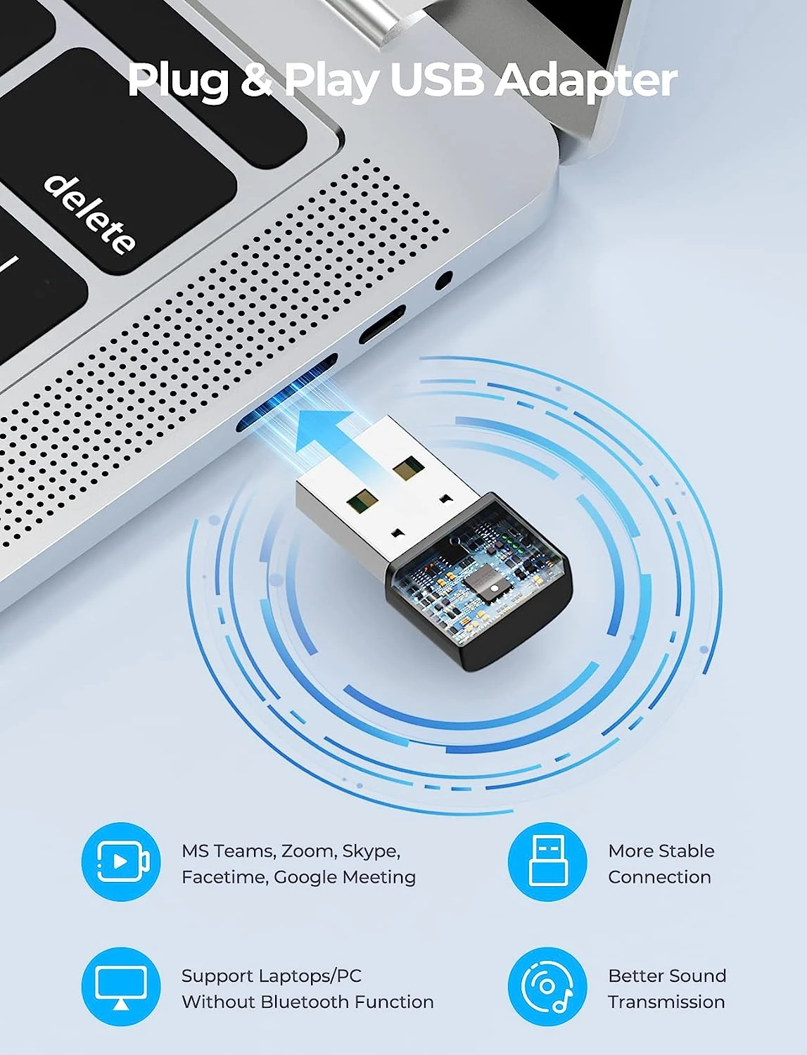 - ☎Plug & Play: wireless headset with USB adapter is ready to get to work right out of the box. Simply insert the included USB dongle into your computer’s USB port, power on the headphones and you’re ready to go. Compatible with all PC systems including Windows, Mac, Chromebook & Linux.
