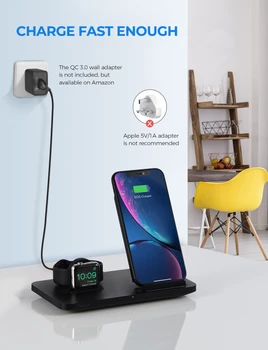 The Convenience of Two in One: The brand new collocation delivers a fresh charging experience. Wireless charging stand associates with watch charging holder. The desk would not be occupied by charging cable. The watch charging cable is taken up into storage room, charge your phone and Apple watch simultaneously. (NOTE: The Apple original charging cable is necessary but not included)