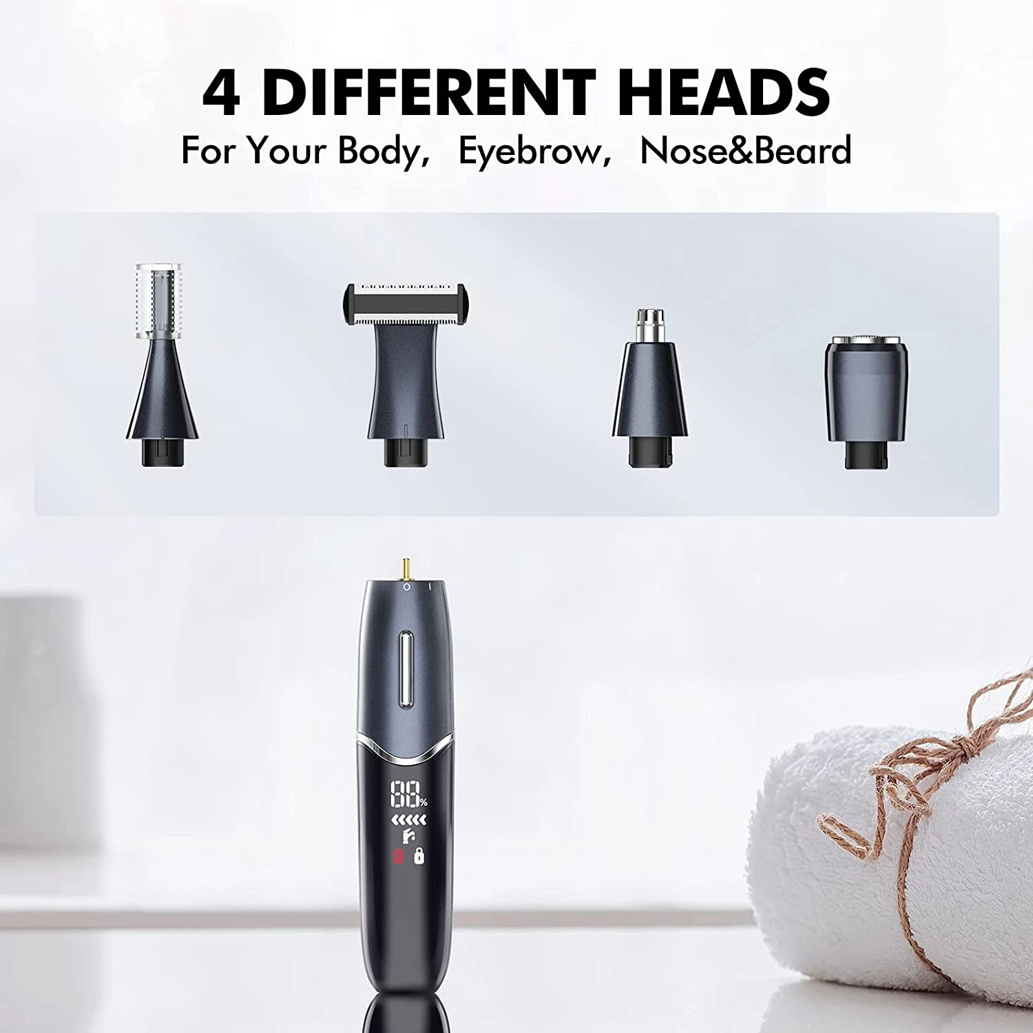 4 Functional Trimmer HeadsIn addition to professional body hair removal, we also offer three different heads for your beard, nose and eyebrows to help you beautify your body in all directions. |
