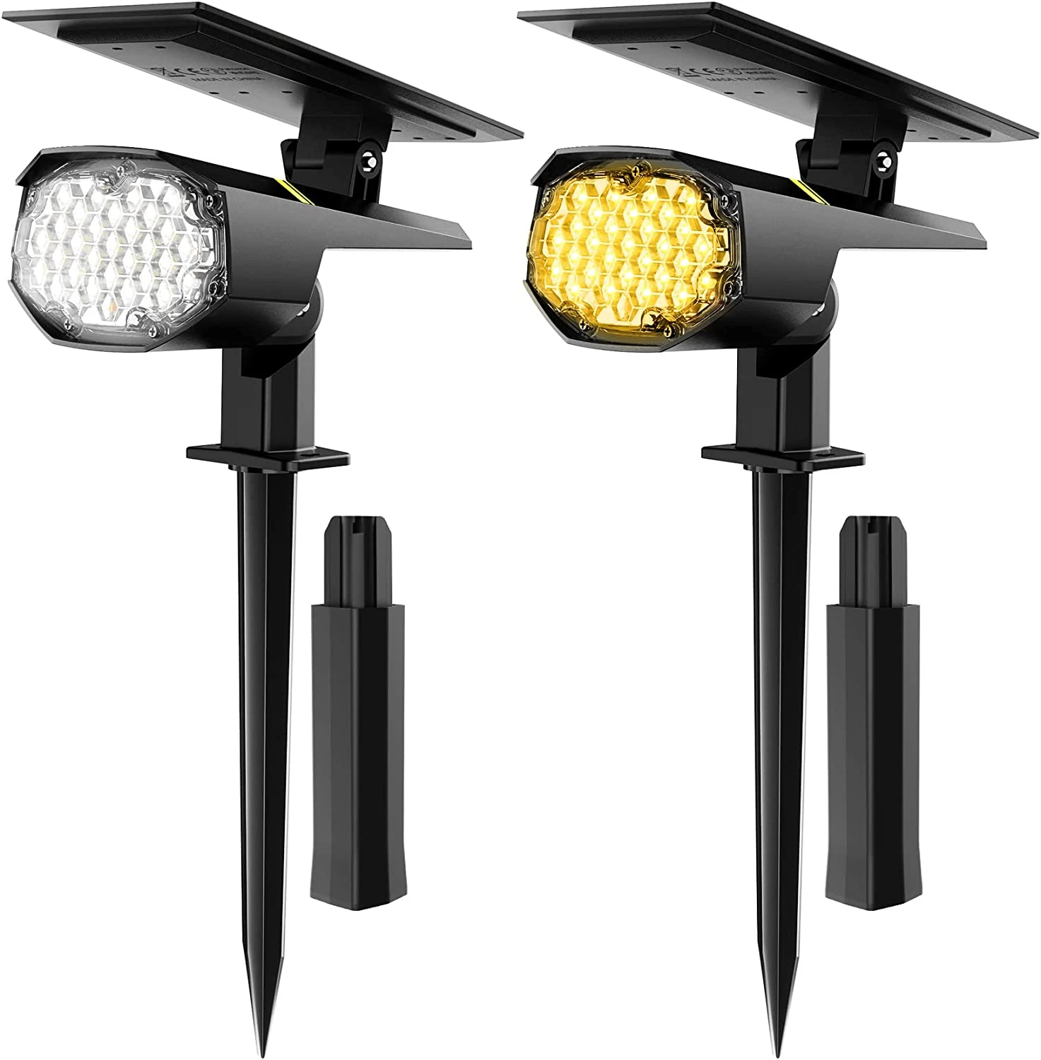 - 【2 Modes with 2 colors】There are two color temperatures on this solar spot light: Cold White & Warm Light. And it features two brightness modes for both colors. Simply adjust different mode by press the summary on the light head.