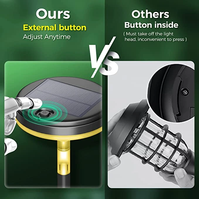Our led solar patehway lights designed with external summary, which is a new convenient feature in the market. Not more annoy about switching the light and not need to take the light head off.