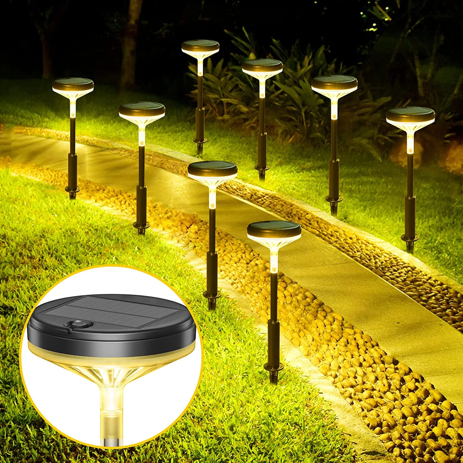 solar powered pathway lights are made of newly upgraded ABS material. ABS material has the characteristics of corrosion resistance,no rust and is more durable than metal or glass shell.