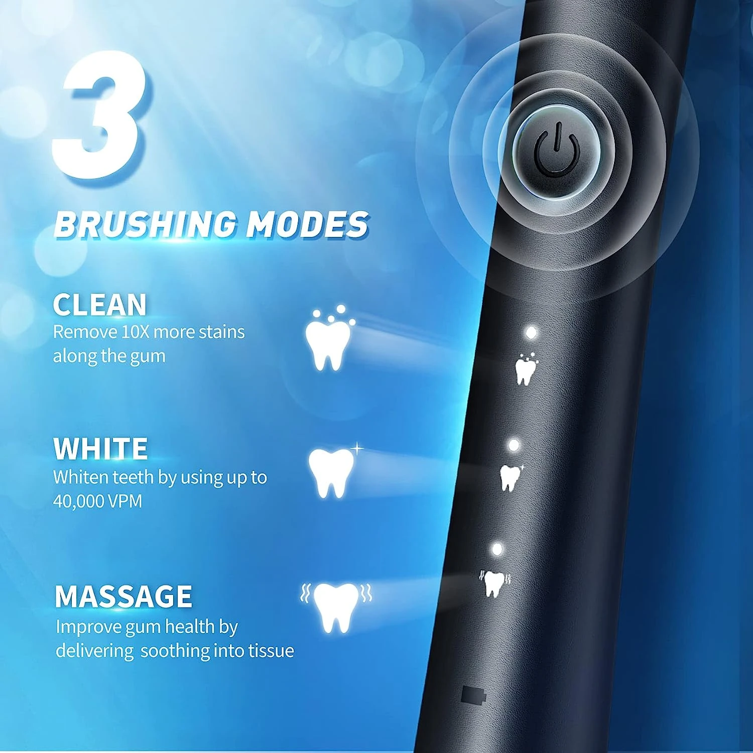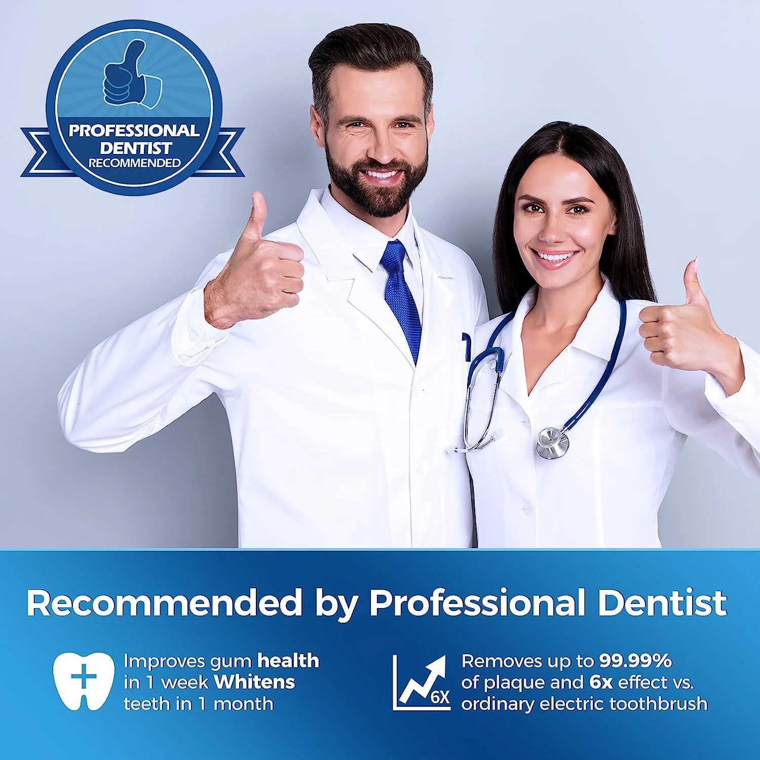 - 【40000VPM HIGH VIBRATION】 – Electric toothbrush for Adults equipped with 40,000 micro-brushes per minute powerful ultrasonic technology. Deep cleaning all-round,dissolve tooth dirt quickly,and won’t hurt your teeth. Get a thorough 10X cleaning Effect than manual toothbrush.