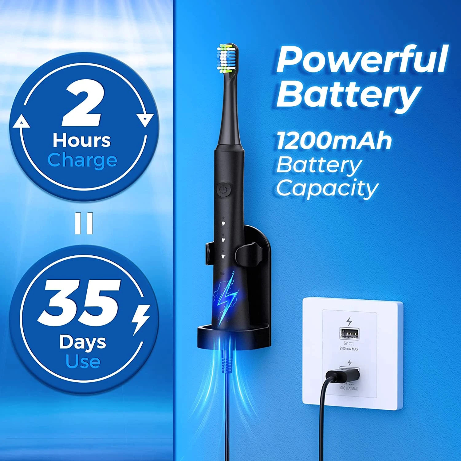 - 【35 Days Last-Long Cordless】- Last for 35 DAYS after only 2 hours full-charging(2mins x 2 / day). Whether in daily life or travel, this electric toothbrush for adults will meets your need. Brings sonic toothbrush into modern times with its built in enhanced features.
