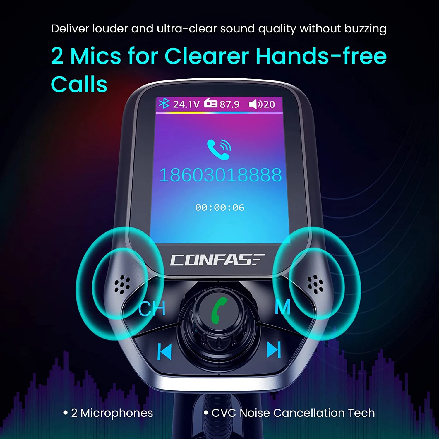 [Upgraded] CONFASE PD20W+2 CVC Mic V5.0 FM Transmitter For Car