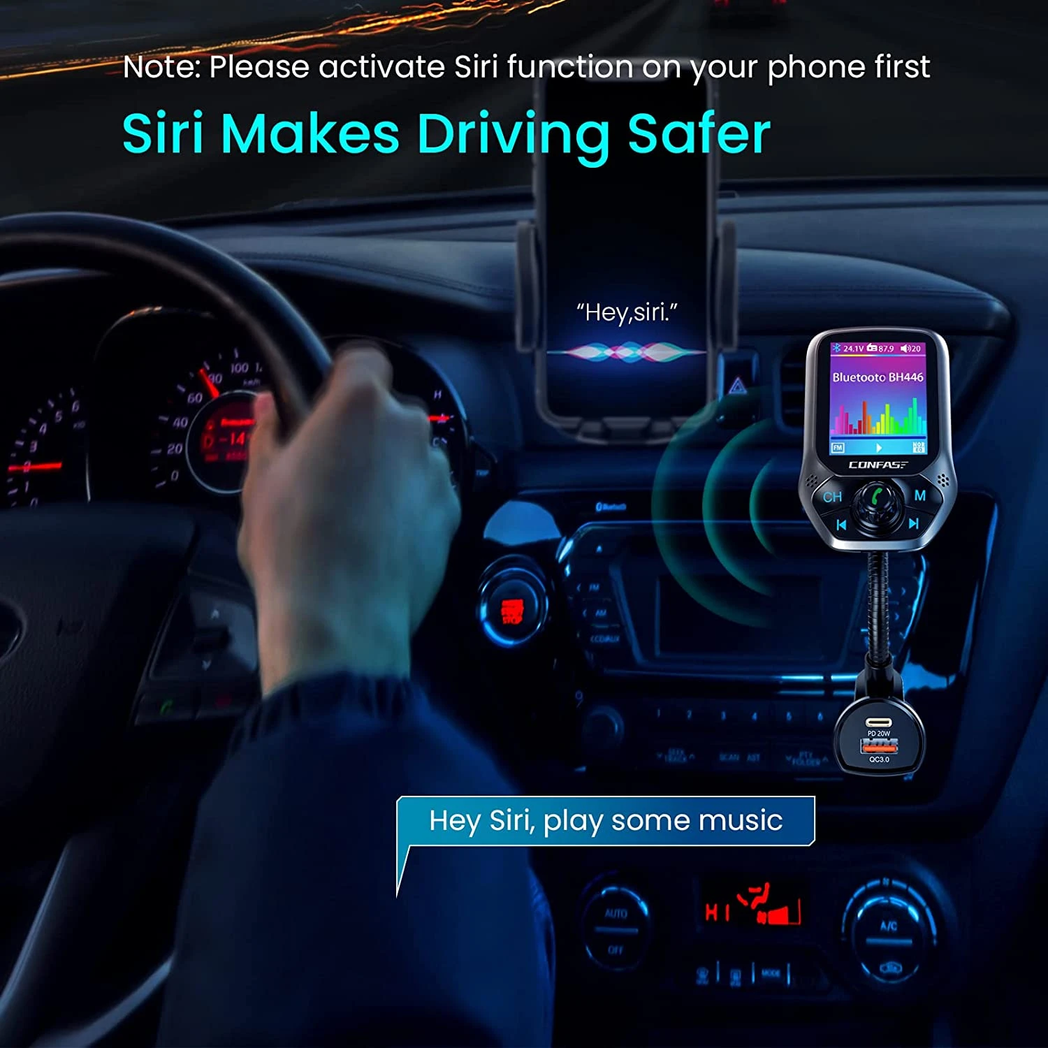 Voice Assistant for Safer Driving In addition to voice navigation function, our fm car transmitter allows you activate Siri or Google Assistant to send messages, play music, make hands-free calls, get directions and more. You can control your phone by giving voice commands. Not having to take your hands off the wheel makes driving safer and more reassuring.