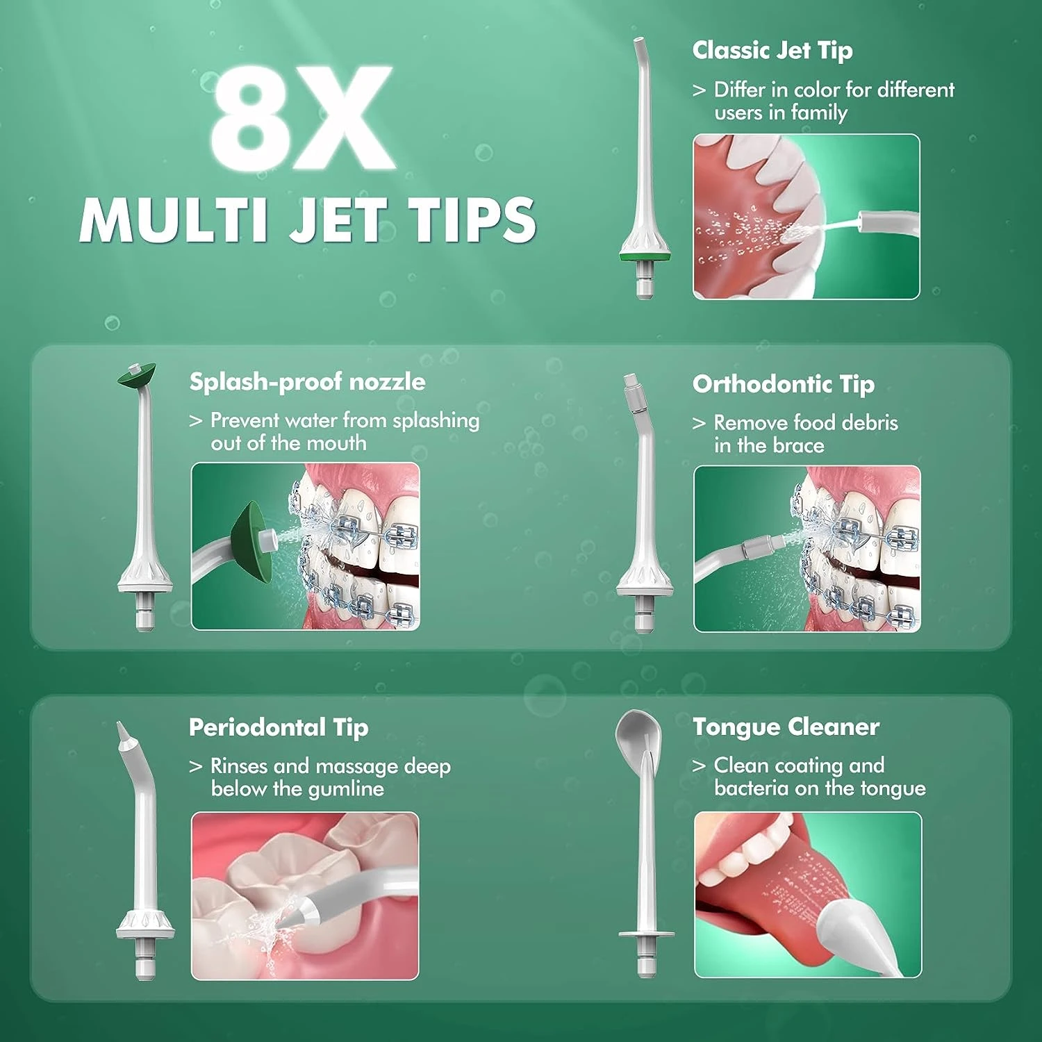 100% Washable*IPX8 waterproof and may be used in the shower. Our electric flosser is fully waterproof avoiding leakage of internal water. And the cordless teeth cleaning tools can be used safely when shower in the bathroom. |