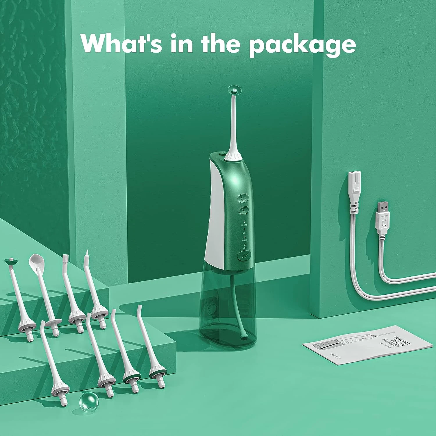 Portable and Power water dental flosser comes with an USB charger cable, Suitable for use at home, in the office or when traveling. |