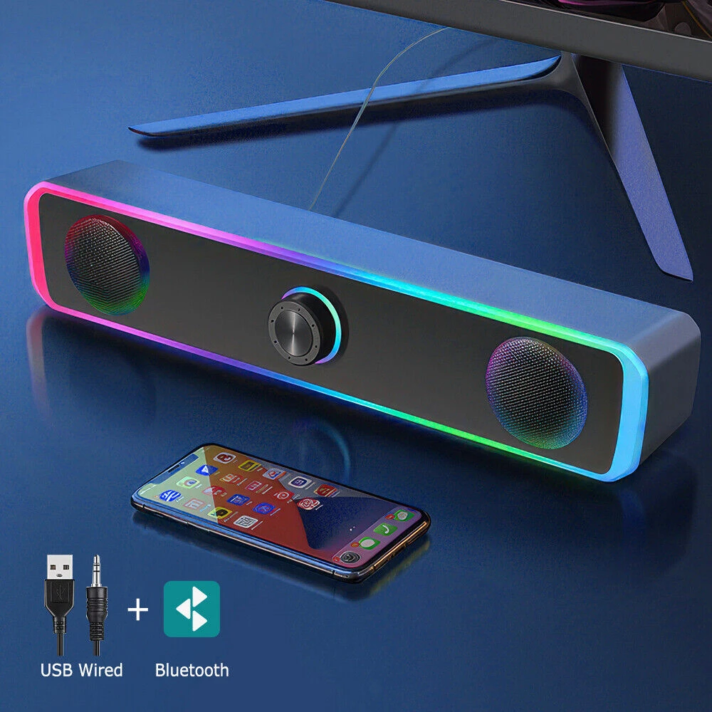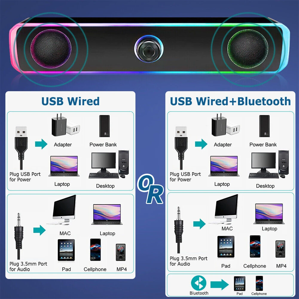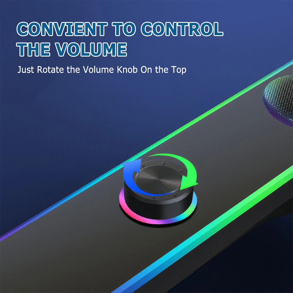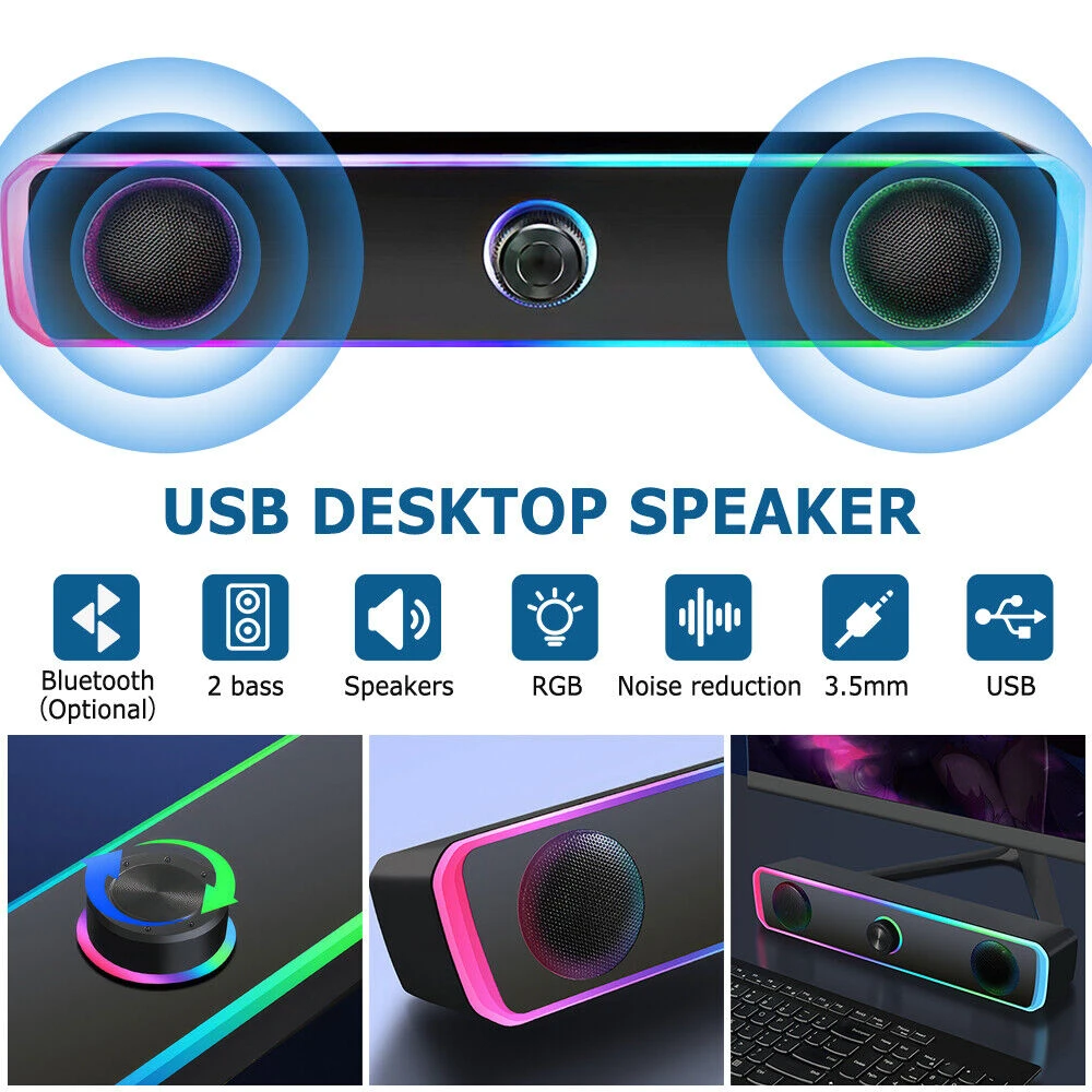 2.RGB Lighting: desktop speakers with gradient RGB lighting, various colors changing gradually, to boost the audio-visual experience.