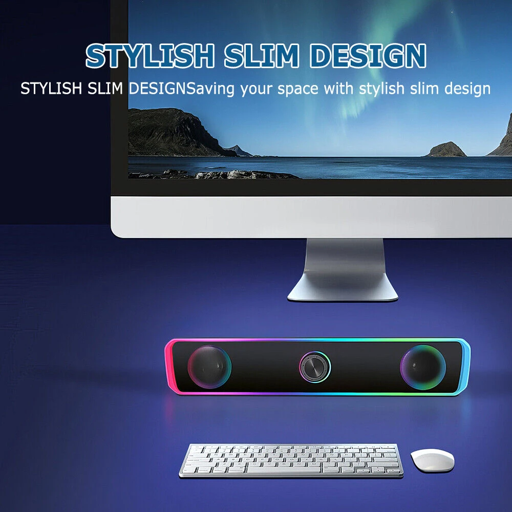 1.Stereo and Noiseless:The PC speaker uses upgraded 2x3W technology to deliver the clear and crystal sound .The soundbar speaker can enhance your listening experience when you enjoying indoor movies, videos, music and games.