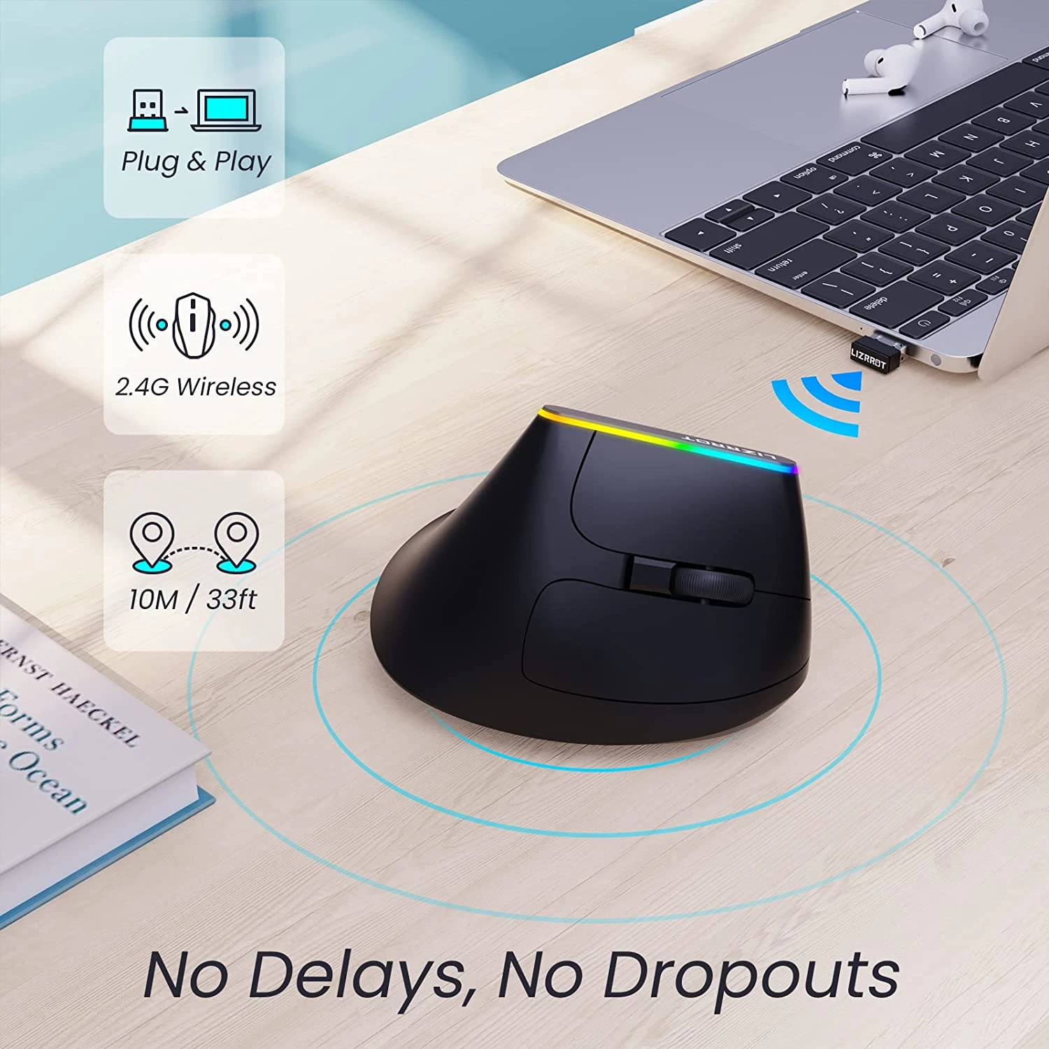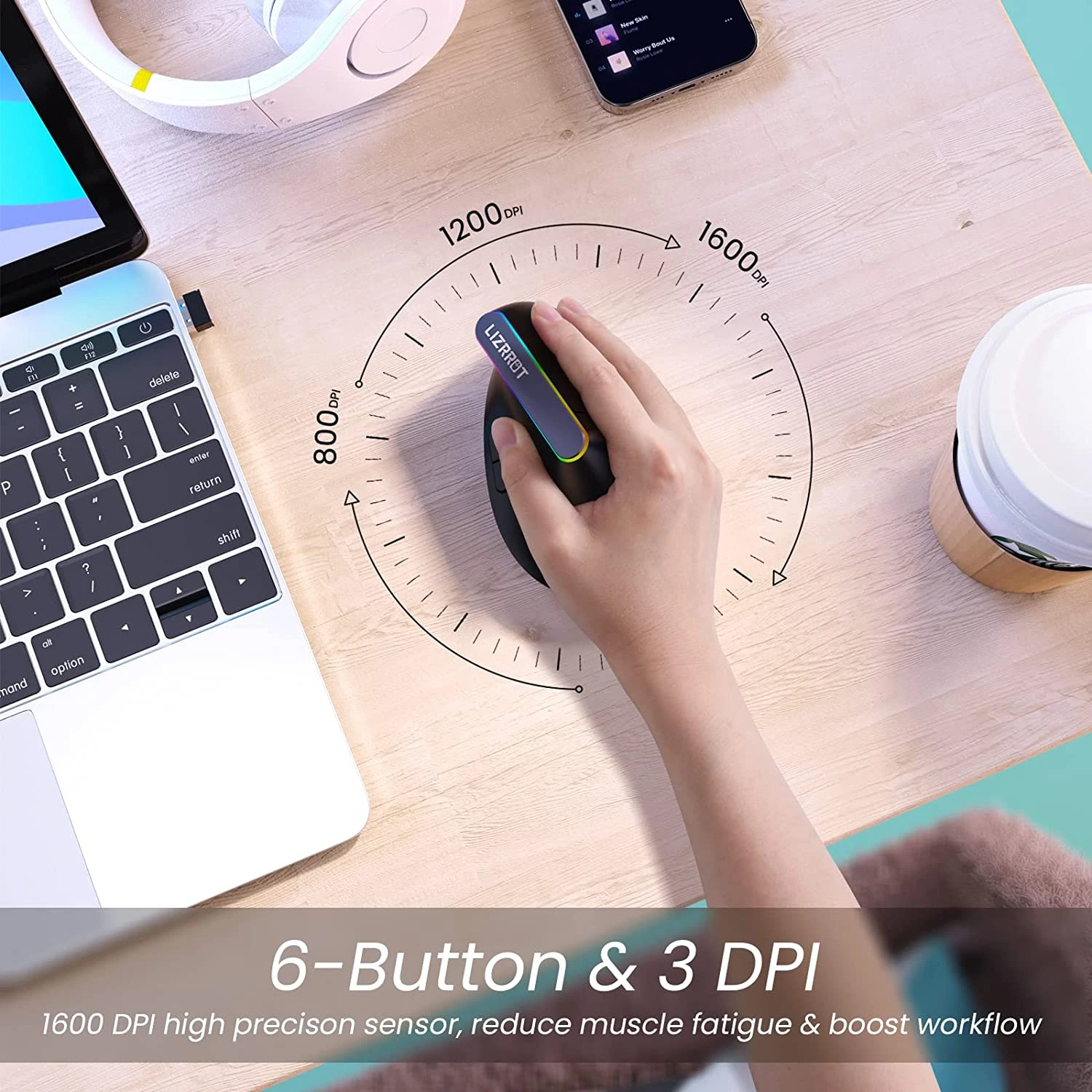 - [Keep Your Motivated]When the daily working let you down,LIZRROT vertical mouse will give you a hand,the vertical shape makes your hands stretch more naturally and 57° get you feeling supppppper comfortable and energetic.