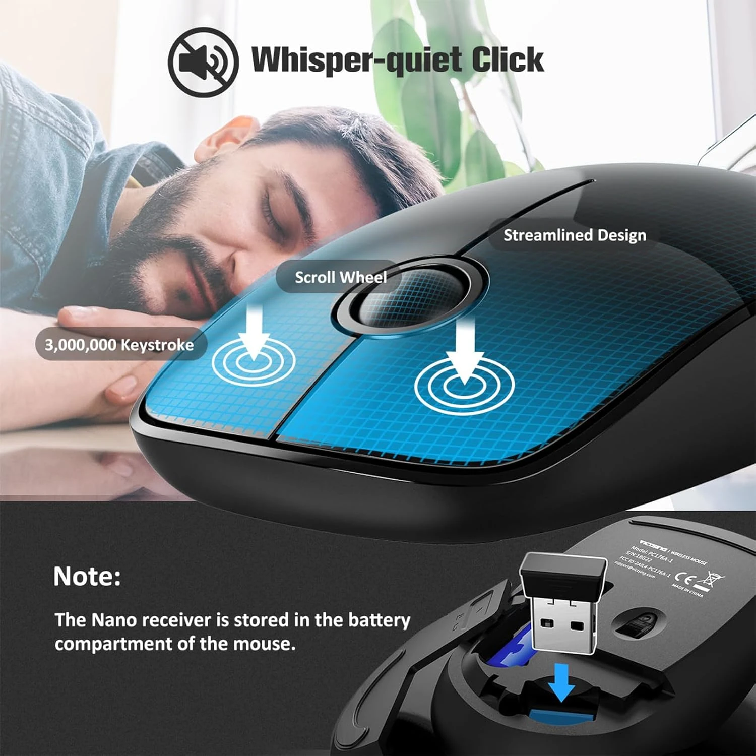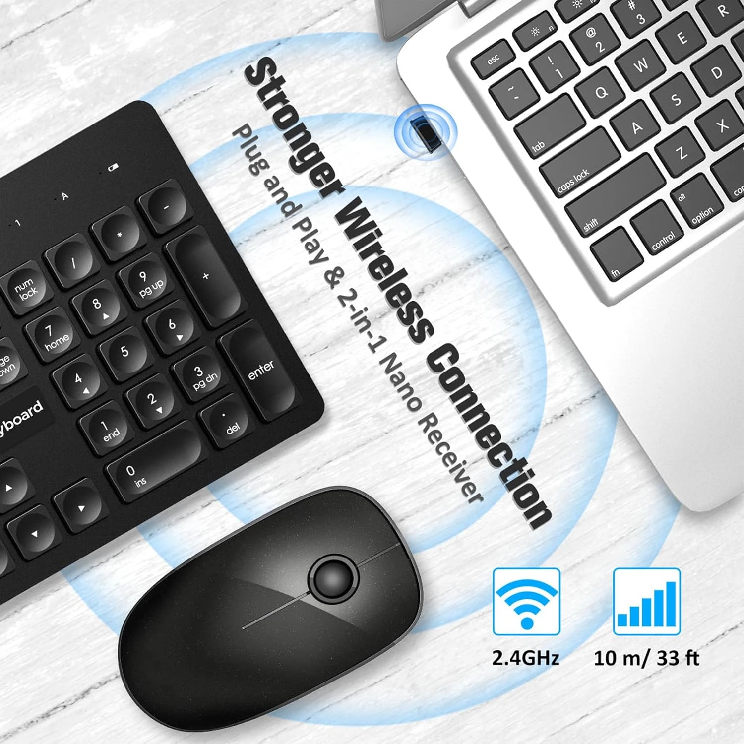 - Silent Mouse & Low-noise Keyboard- Wireless keyboard mouse combo positions your fingers for optimum comfort and fluidity. VEILZOR wireless mouse and keyboard whispers typing and clicking to avoid disturbing your loved ones while you are fully concentrated on your work.