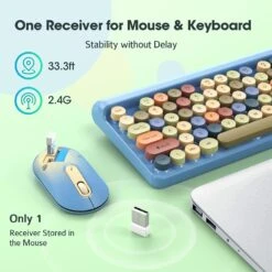 With USB receiver, keyboard and mouse combo makes setup easy. No worry about delays or dropouts when running Windows or MAC.